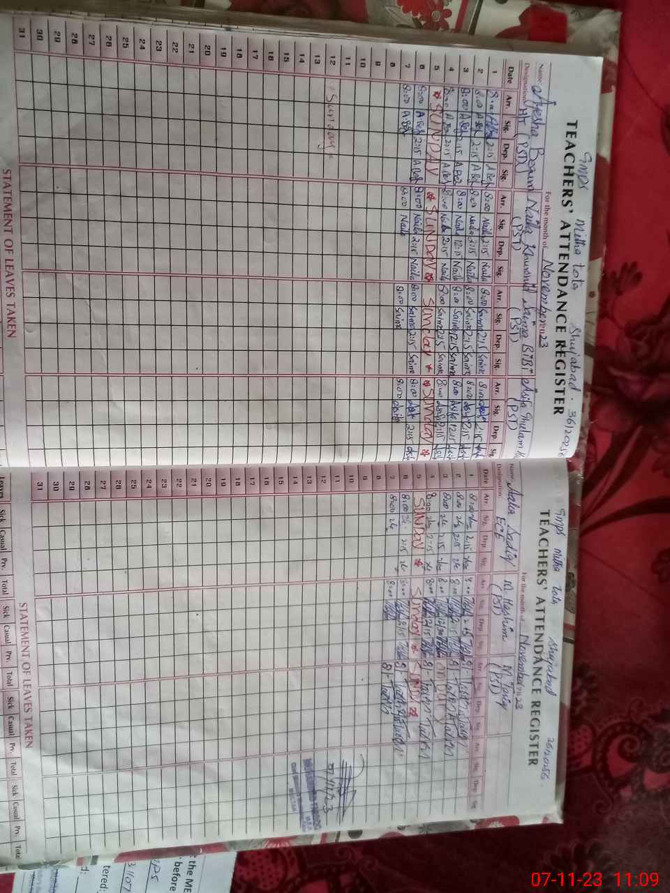 | Monitoring Date: 07-11-2023 | Start Time: 07-11-2023 10:39 AM | End Time: 07-11-2023 11:15 AM | Name of MEA: MU**** FA**** | |