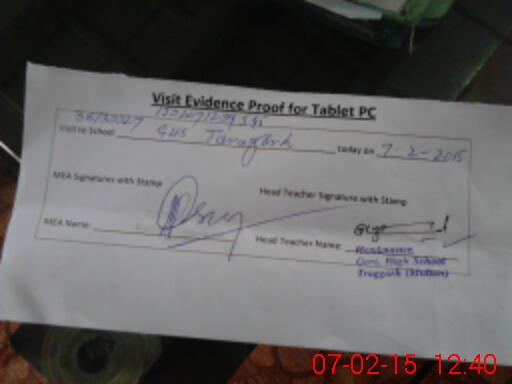 | Attendance Register | Head Teacher | MEA with School | Visit Proof |
