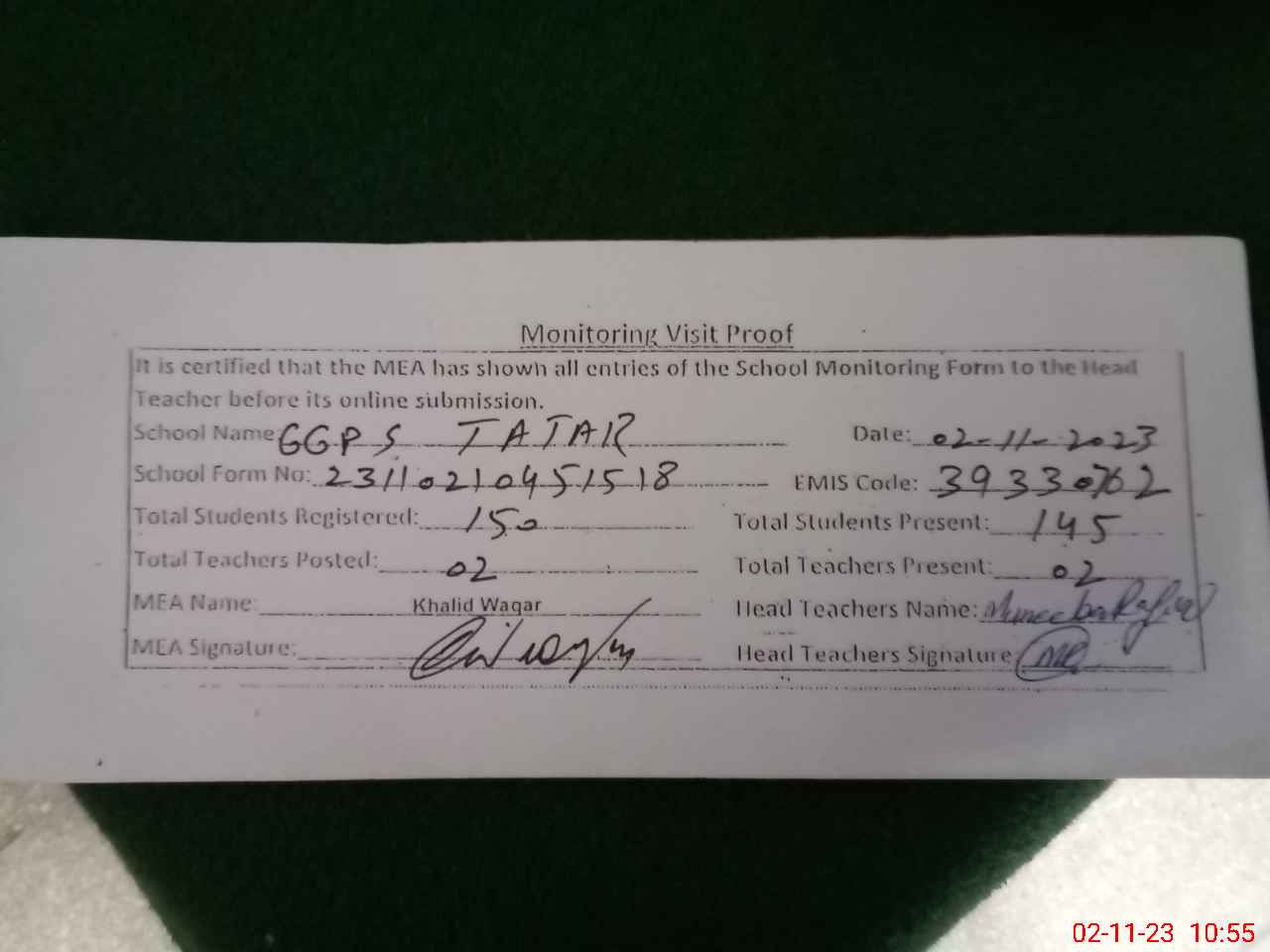 | EMIS Code: 39330762 | Name of School: GGPS TATAR | |||