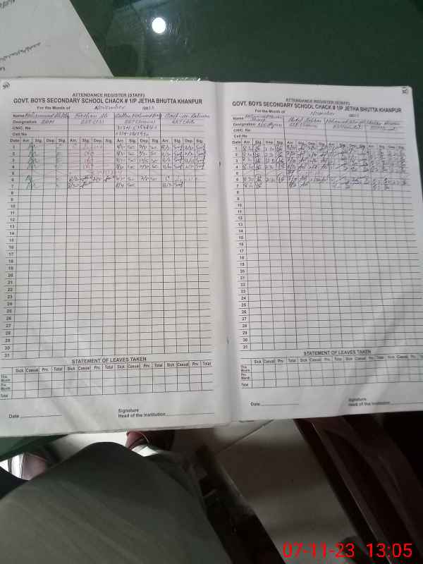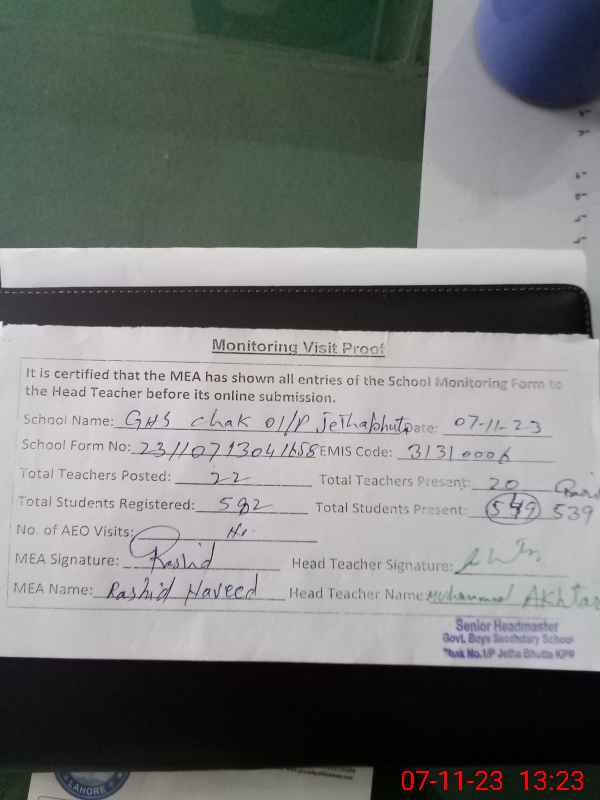 | EMIS Code: 31310006 | Name of School: GHS CHAK 1/P JETHA BHUTTA | |||