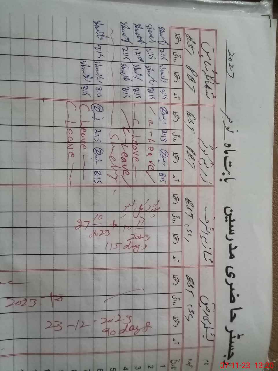 | CNIC | Full Name | Designation | R/C | Absence During Last Calender Month |