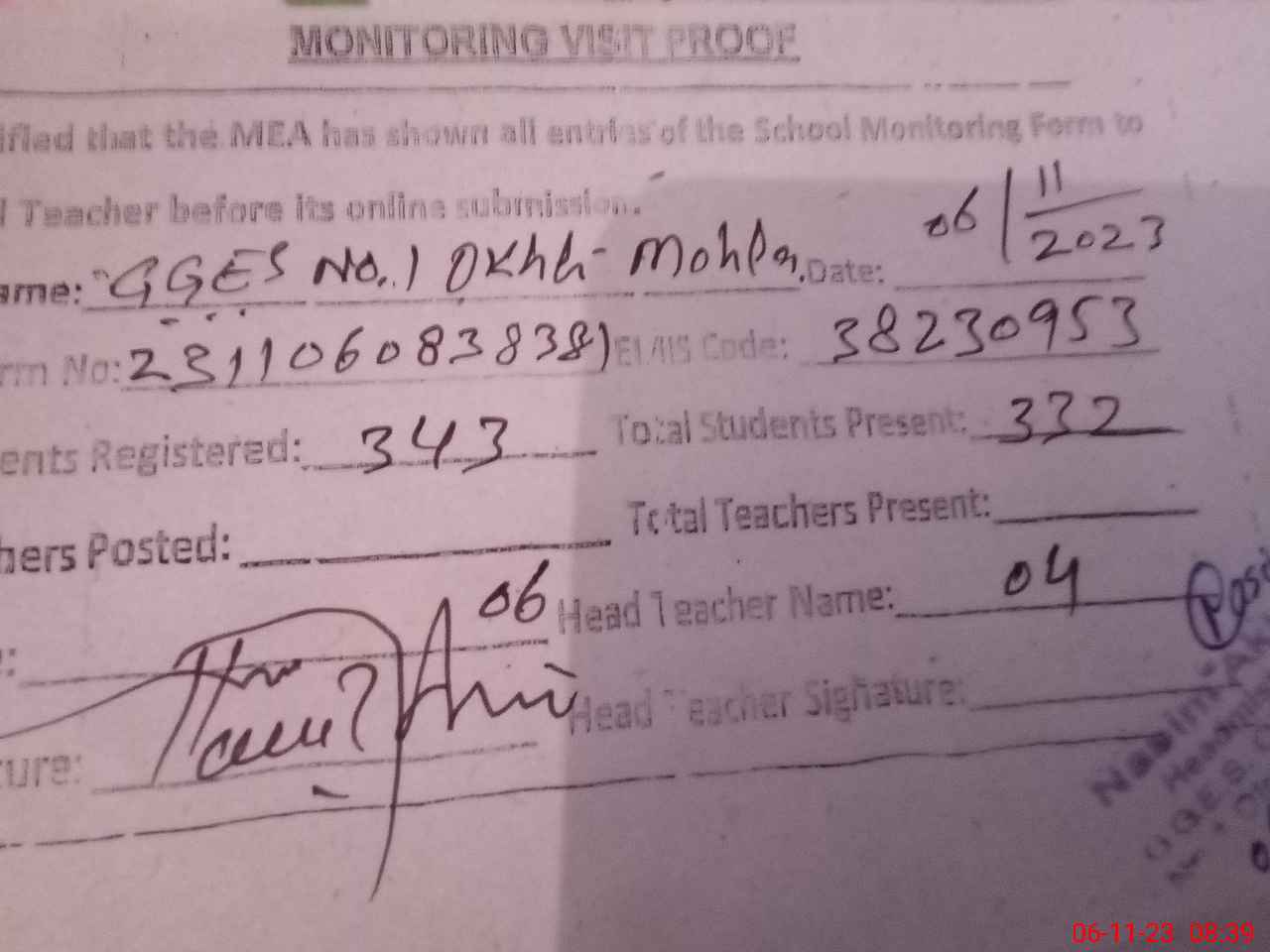 | EMIS Code: 38230953 | Name of School: GGES NO. 1 OKHALI MOHLA | |||