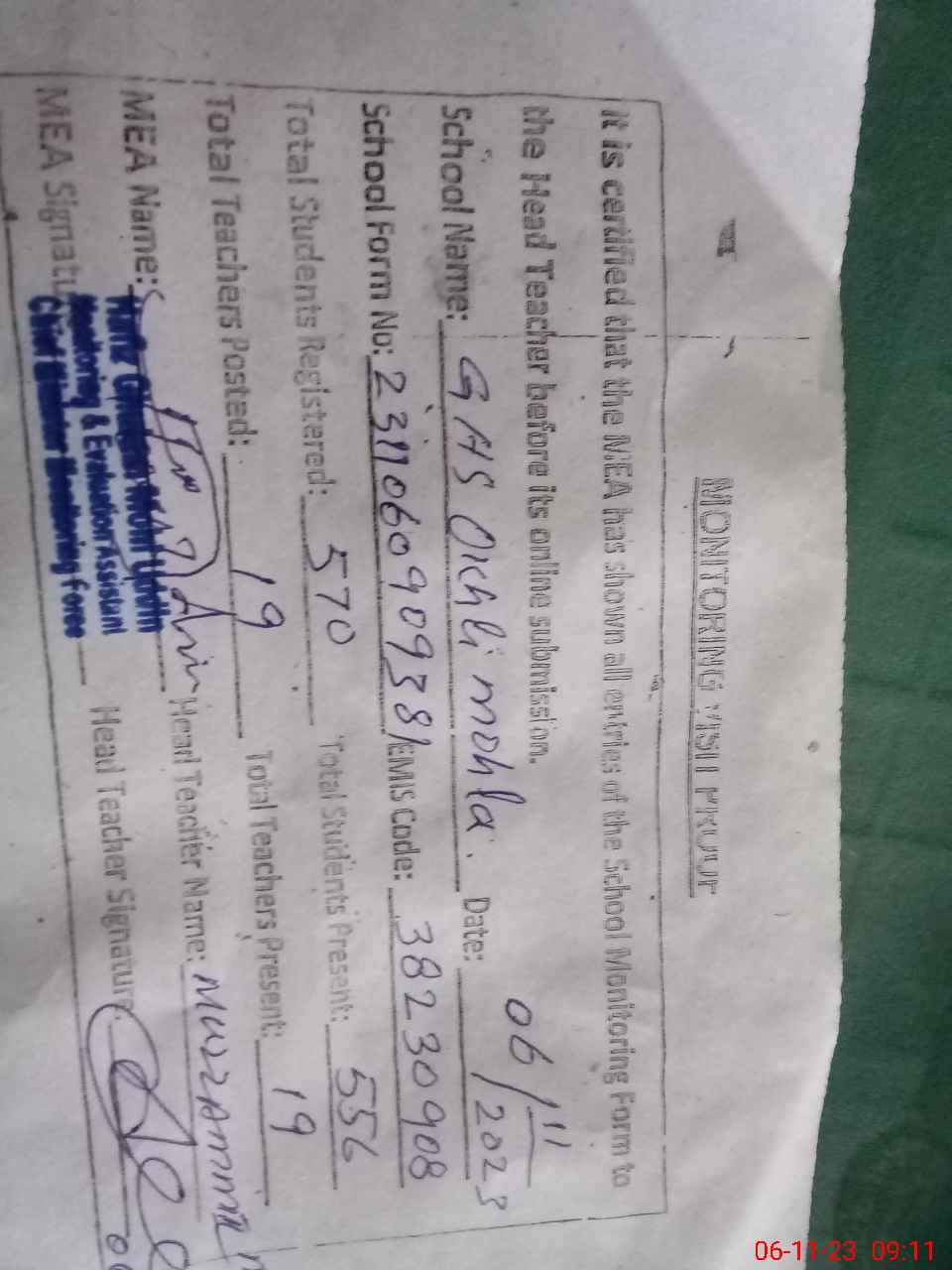| EMIS Code: 38230908 | Name of School: GHS OKHLI MOHLA | |||