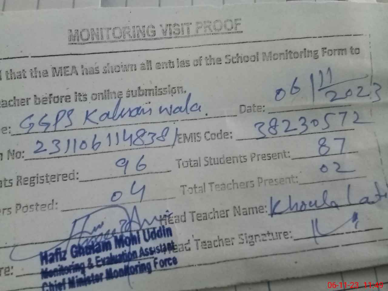| EMIS Code: 38230572 | Name of School: GGPS DERA KALLUAN WALA | |||