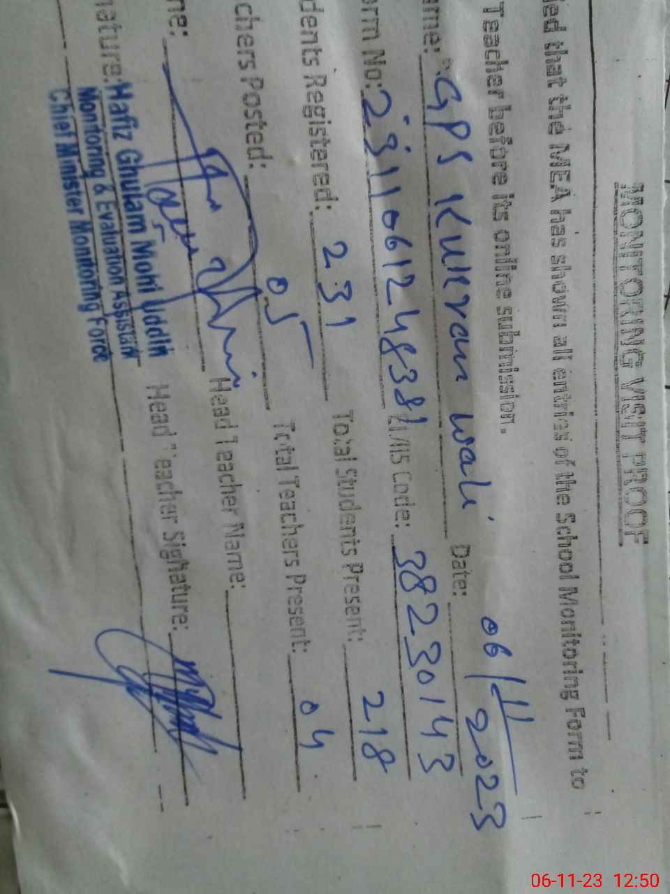 | EMIS Code: 38230143 | Name of School: GPS KUKRAN WALI OKHLI MOHLA | |||