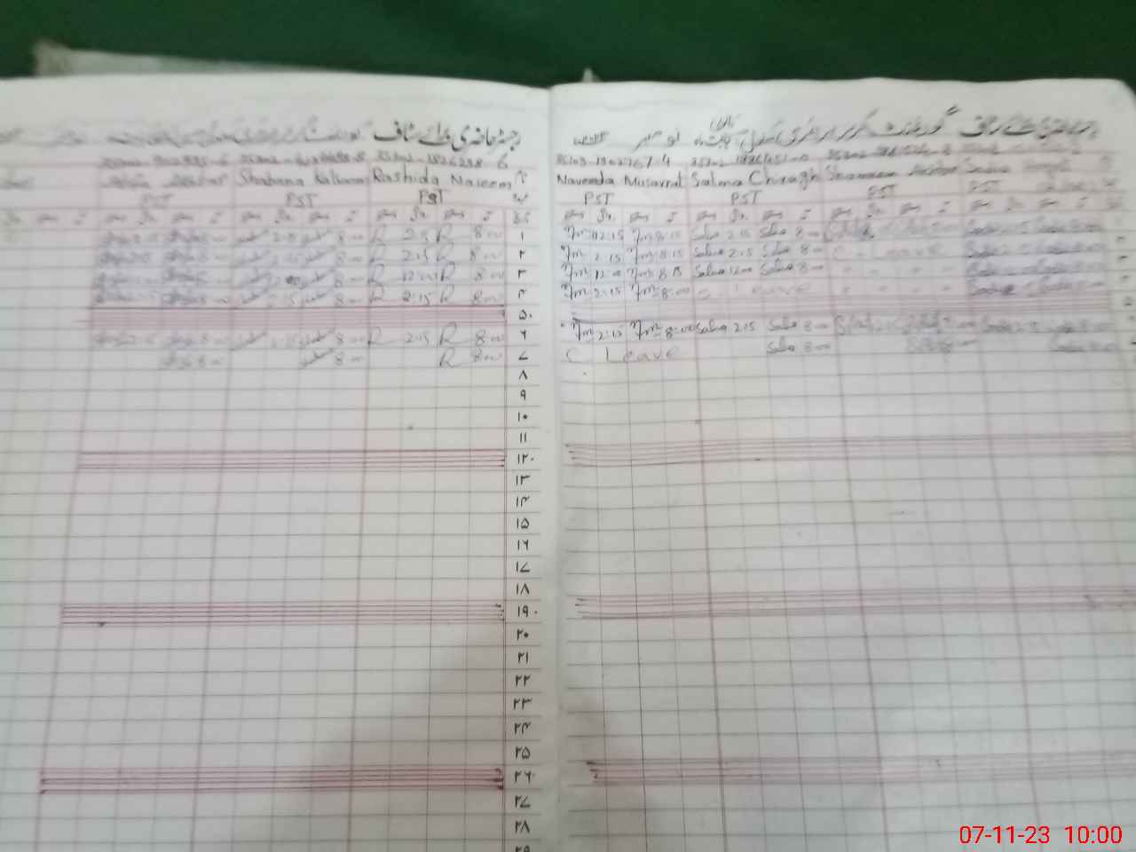 | CNIC | Full Name | Designation | R/C | Absence During Last Calender Month |