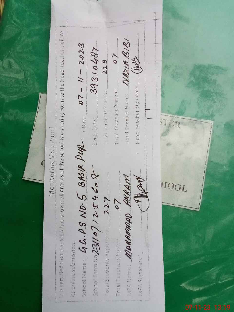 | EMIS Code: 39310487 | Name of School: GGPS NO. 5 BASIR PUR | |||