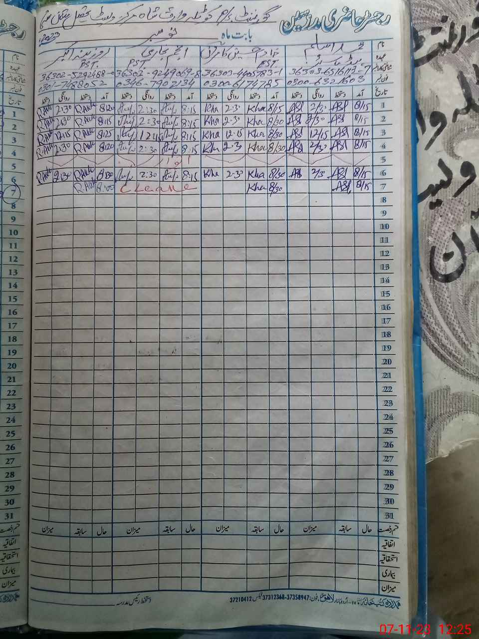 | CNIC | Full Name | Designation | R/C | Absence During Last Calender Month |