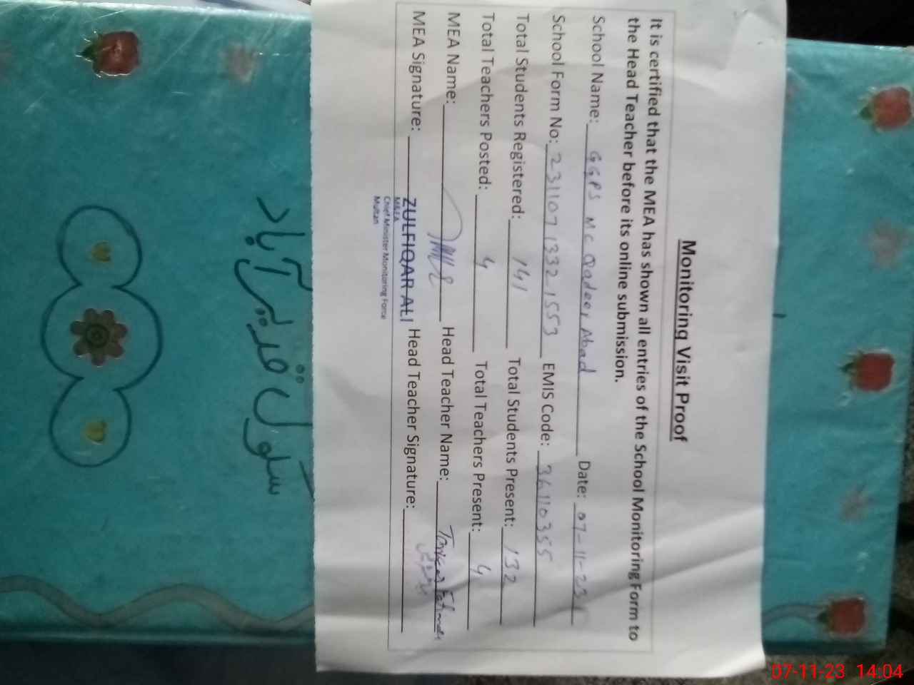| EMIS Code: 36110355 | Name of School: GGPS MC QADEER ABAD MULTAN | |||