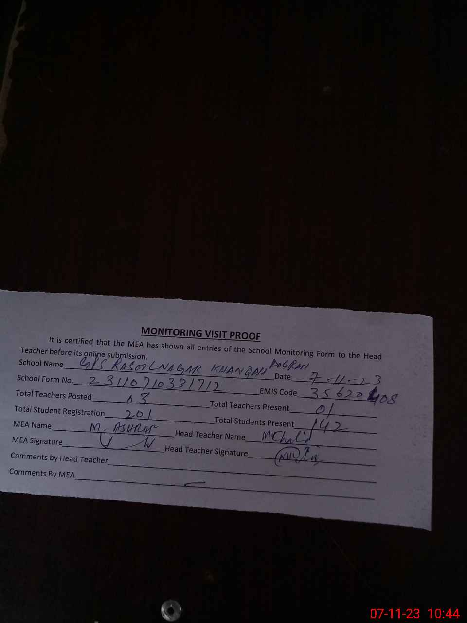 | EMIS Code: 35620408 | Name of School: GPS RASOOL NAGAR KHANQAH DOGRAN | |||