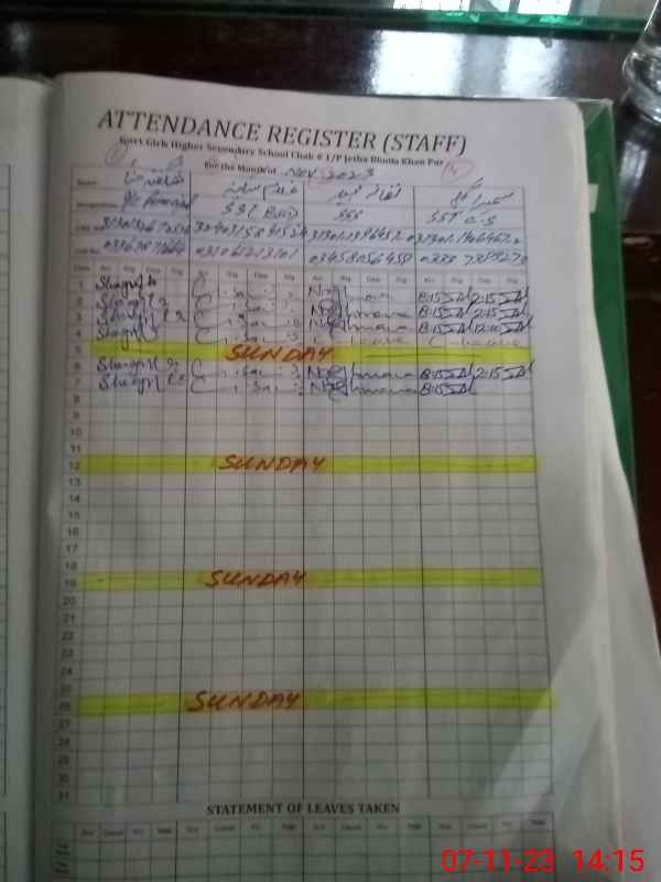 | CNIC | Full Name | Designation | R/C | Absence During Last Calender Month |