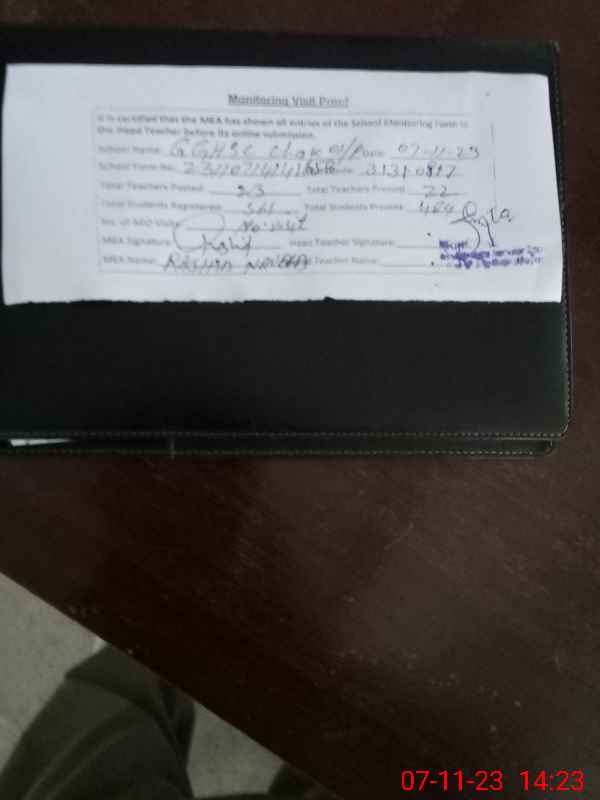 | Attendance Register | Head Teacher | MEA with School | Visit Proof |