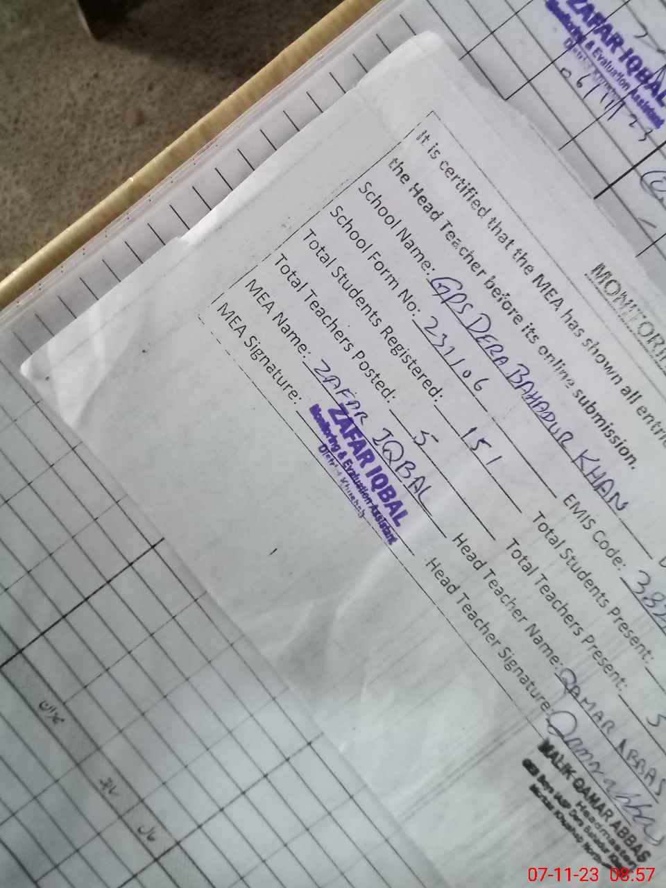 | EMIS Code: 38210168 | Name of School: GPS DERA BAHADUR KHAN | |||