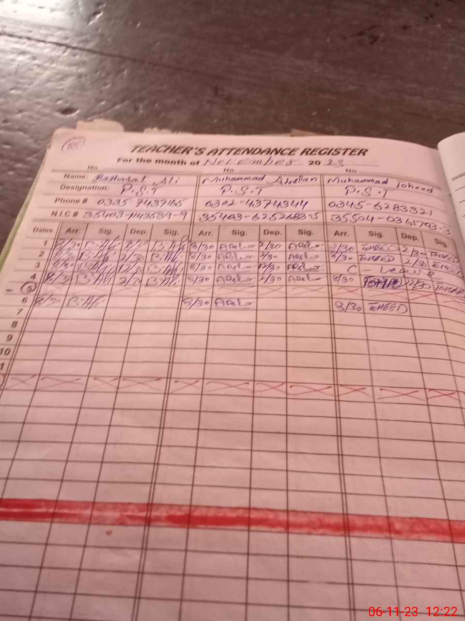| CNIC | Full Name | Designation | R/C | Absence during last cal. month |