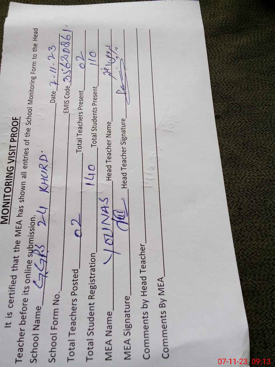 | EMIS Code: 35620861 | Name of School: GGPS CHAK 24 KHURD | |||