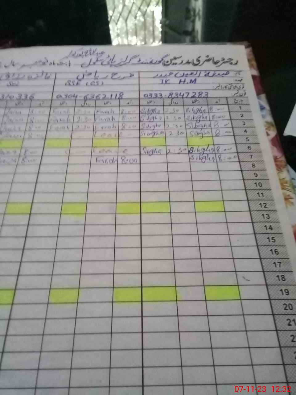 | Name: SI**** TU**** AI**** HA**** Designation: (School Headmaster's/Headmistress's) Headmistress Phone/Cell Number: 03**** |