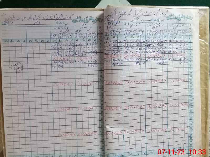 | CNIC | Full Name | Designation | R/C | Absence During Last Calender Month |