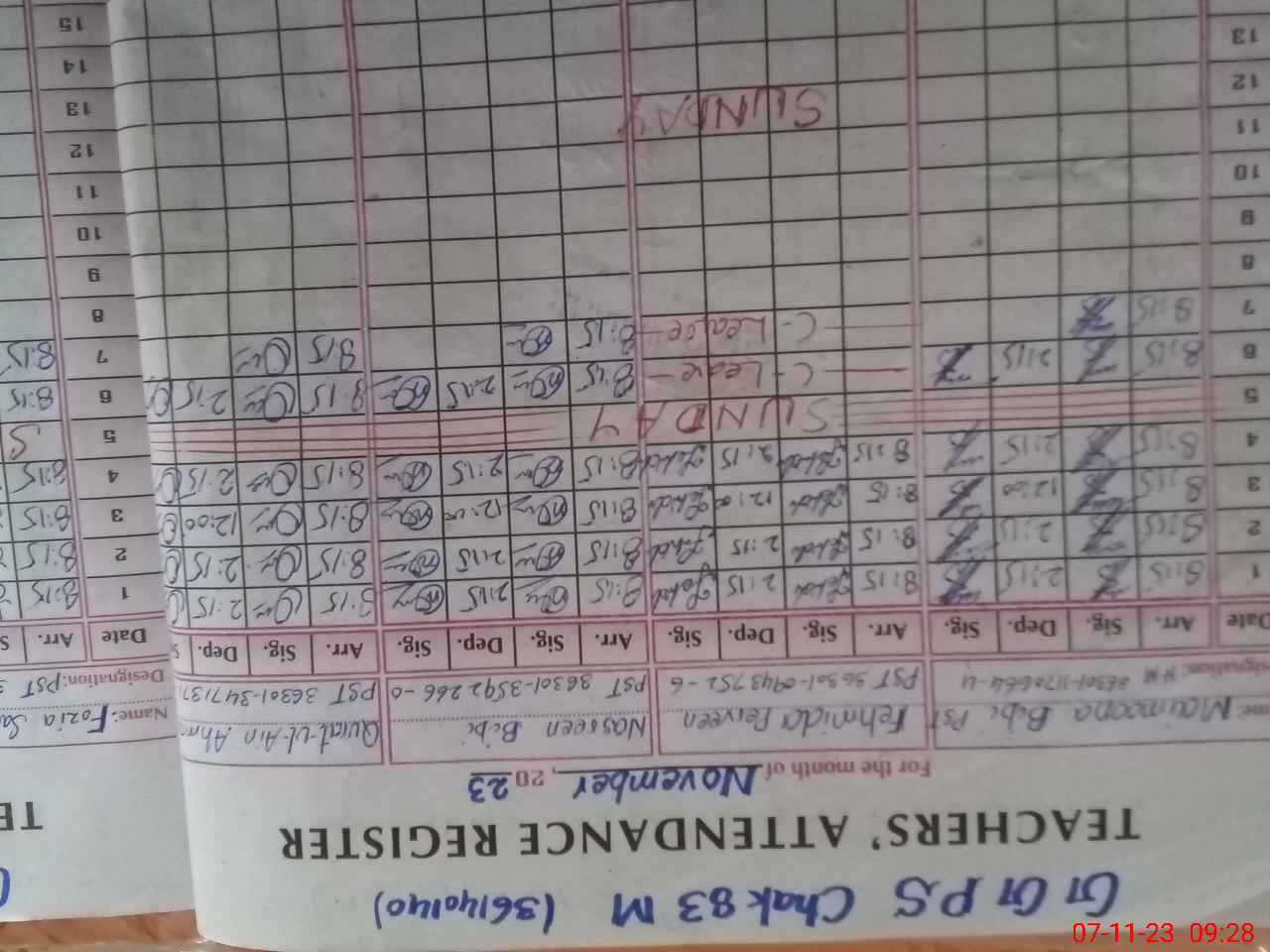 | CNIC | Full Name | Designation | R/C | Absence During Last Calender Month |
