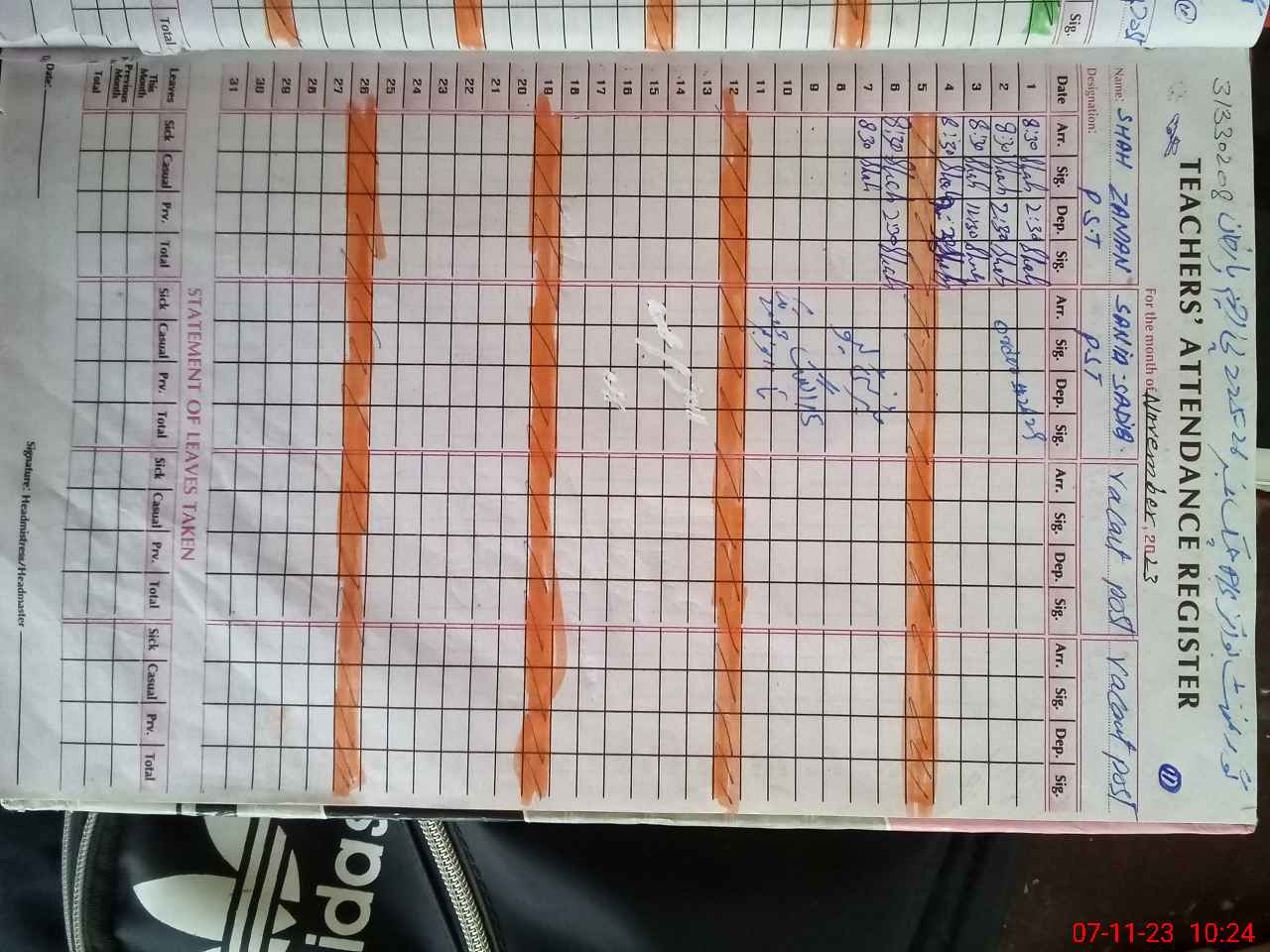 | Name: Sh**** Za**** Designation: (School Headmaster's/Headmistress's) E S E ARTS Phone/Cell Number: 03**** |