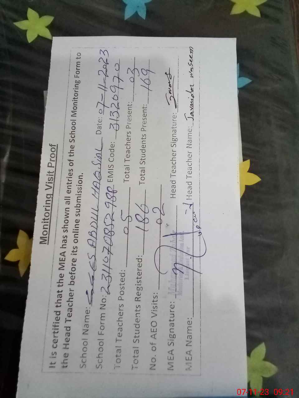 | EMIS Code: 31320970 | Name of School: GGES ABDUL HAQ SIAL | |||