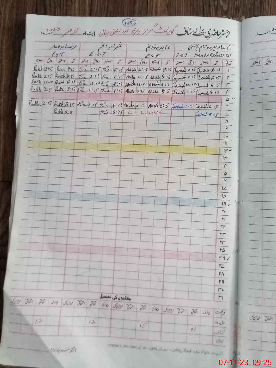 | 31**** | Ab**** Kh**** | 3 | 1 | 0 | 0 | 0 | 0 | 0 | 0 | 0 | 0 | 0 | Absent (Un-Authorized) |