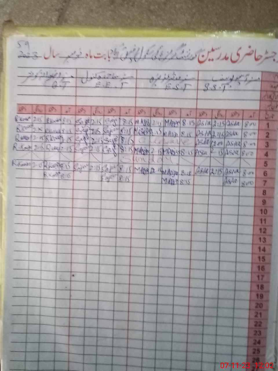 | CNIC | Full Name | Designation | R/C | Absence During Last Calender Month |