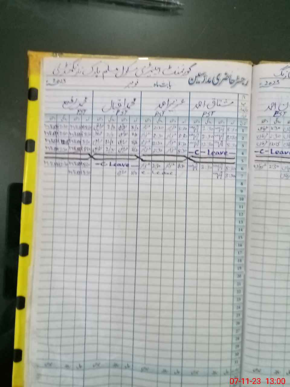 | CNIC | Full Name | Designation | R/C | Absence During Last Calender Month |