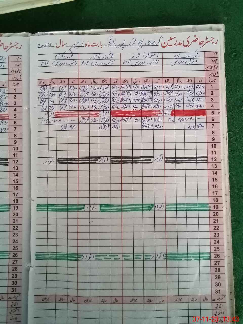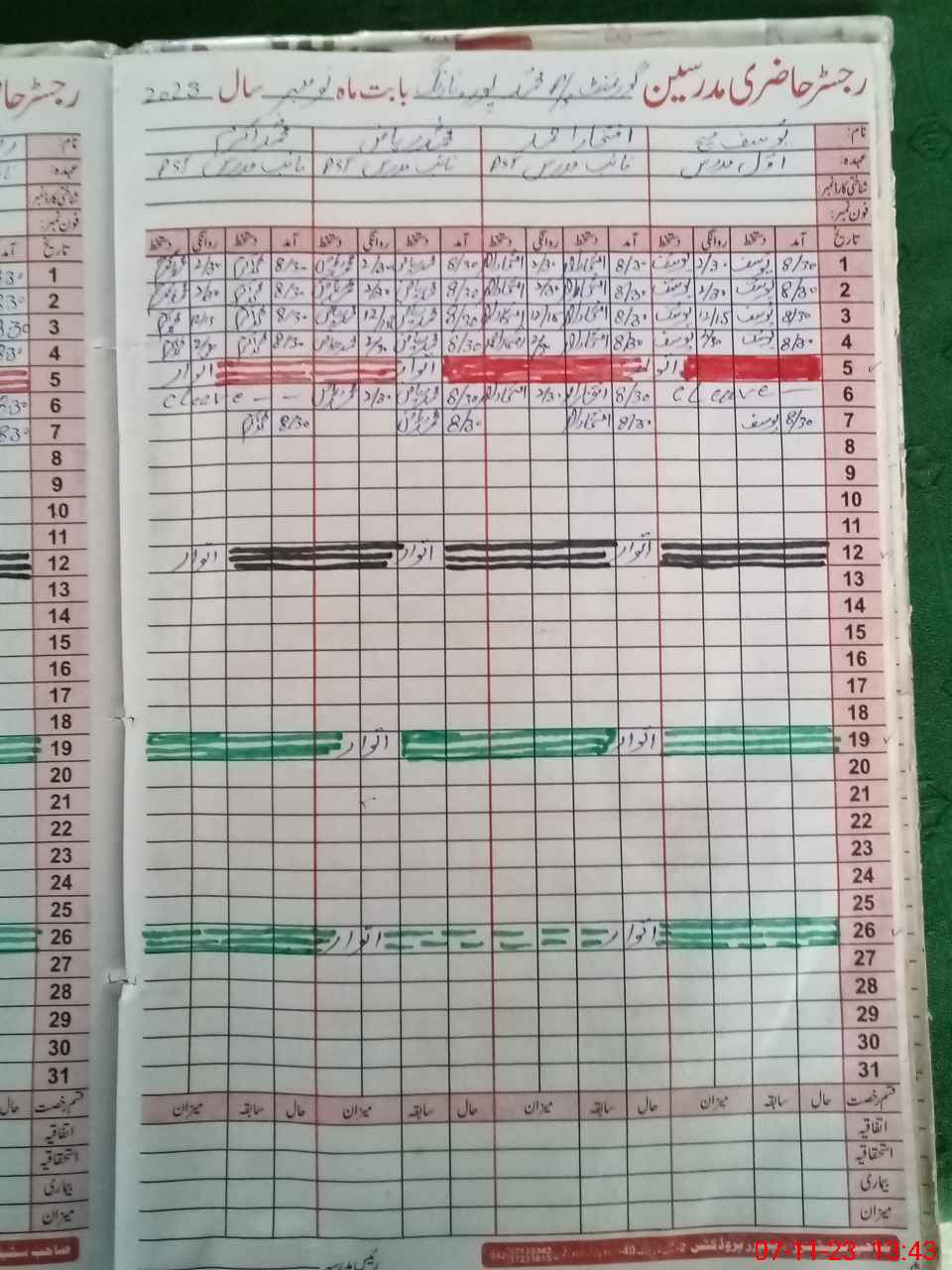 | CNIC | Full Name | Designation | R/C | Absence During Last Calender Month |