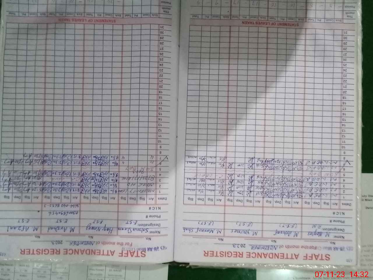 | CNIC | Full Name | Designation | R/C | Absence During Last Calender Month |