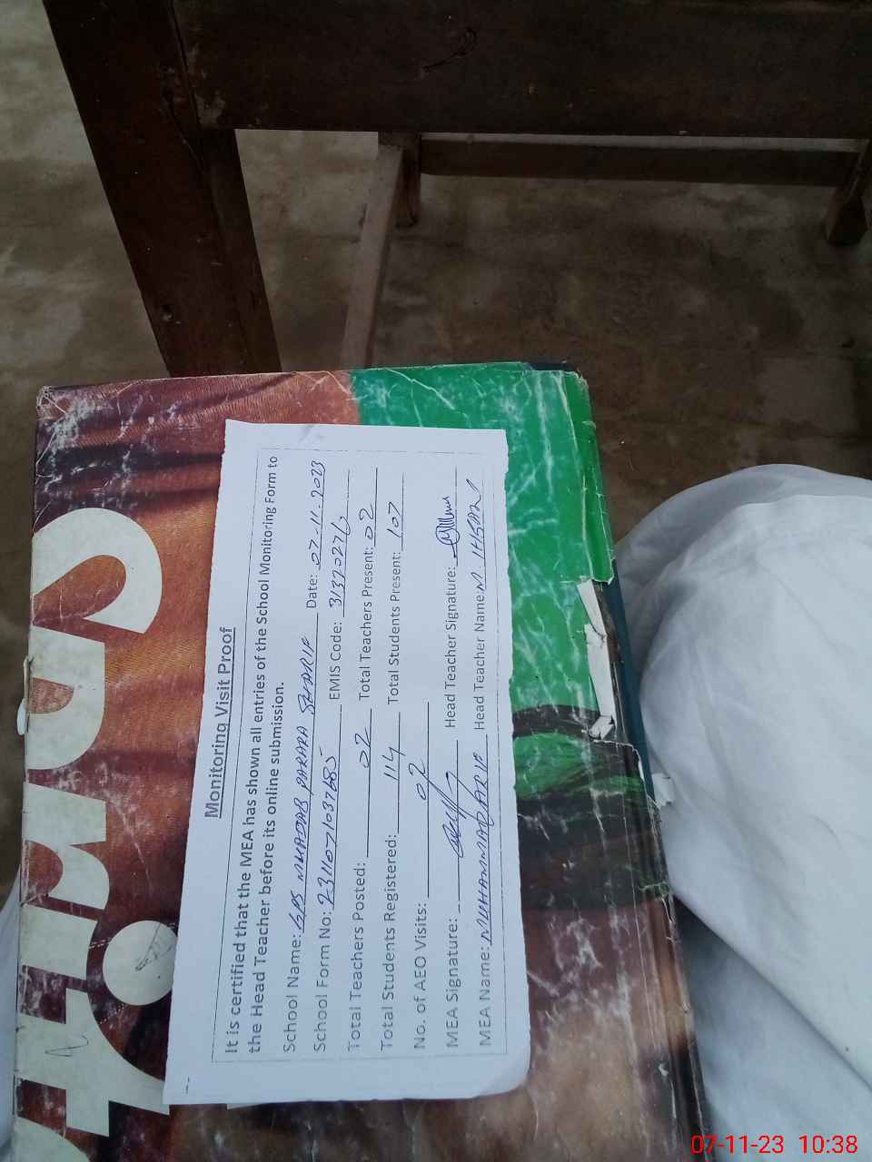 | Attendance Register | Head Teacher | MEA with School | Visit Proof |