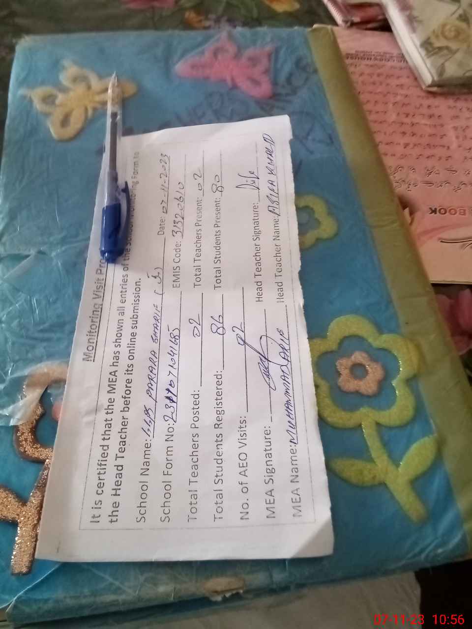 | Attendance Register | Head Teacher | MEA with School | Visit Proof |