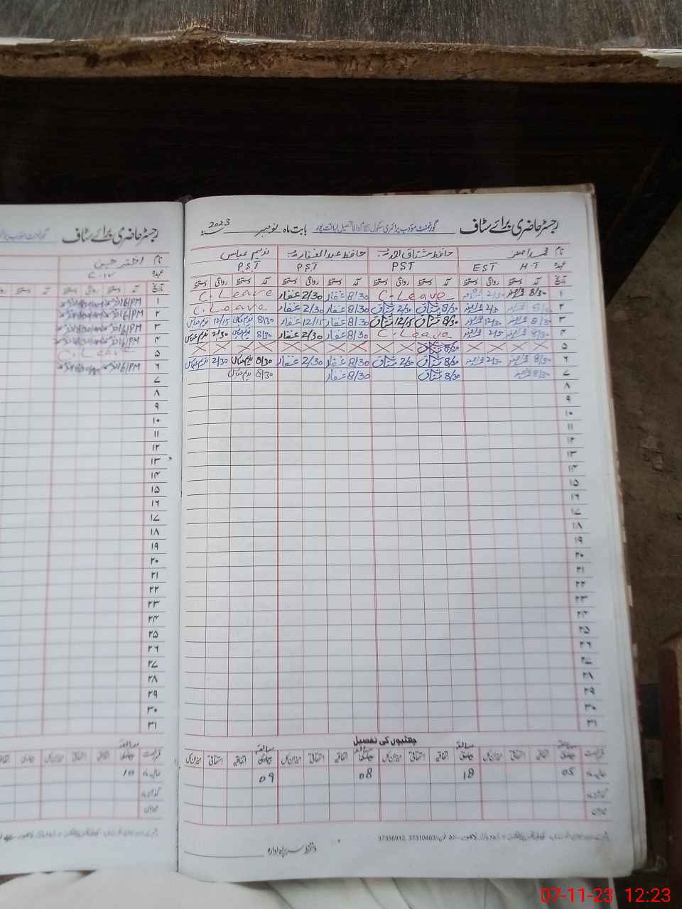 | CNIC | Full Name | Designation | R/C | Absence During Last Calender Month |