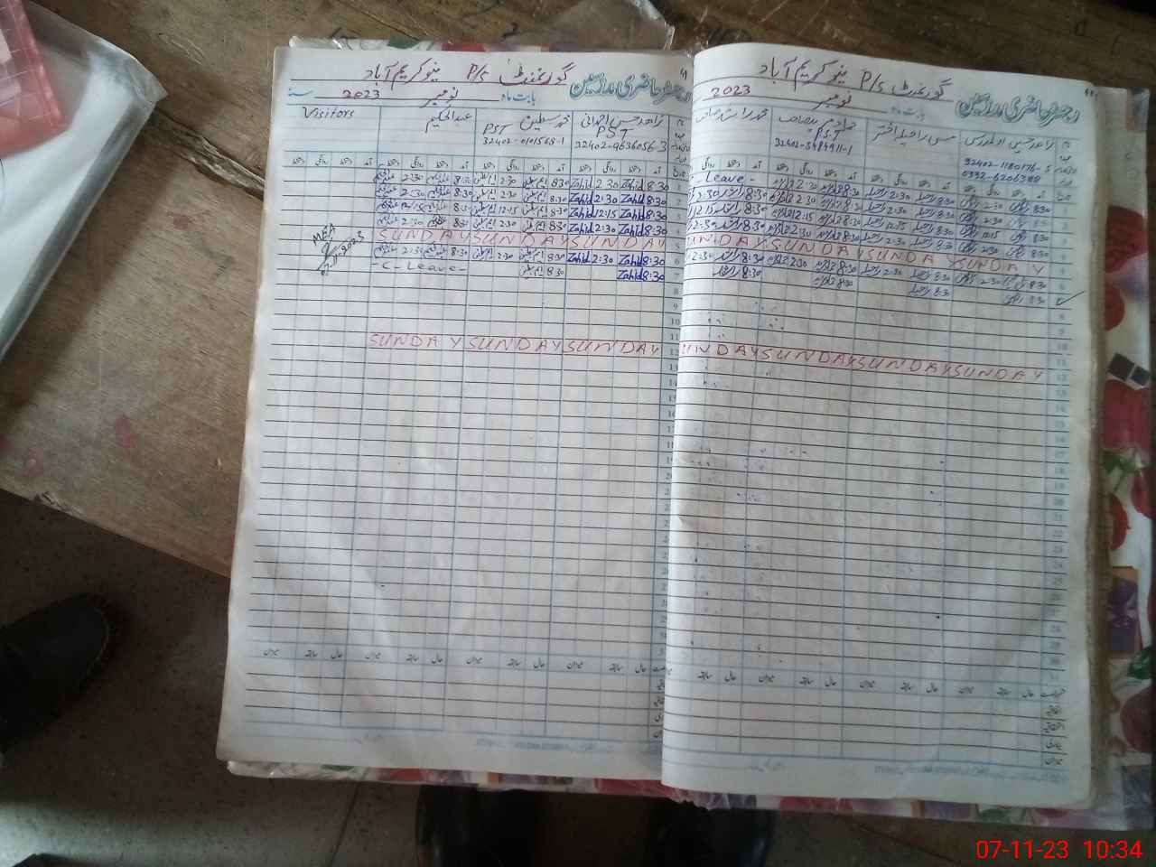 | CNIC | Full Name | Designation | R/C | Absence During Last Calender Month |