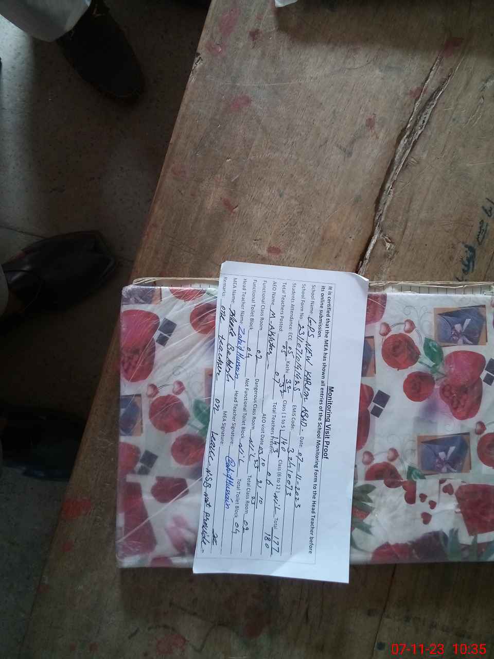 | Certified that this School was Inspected by the Undersigned MEA/DMO Today and the Information Stated Above is as Per Record. | |||||