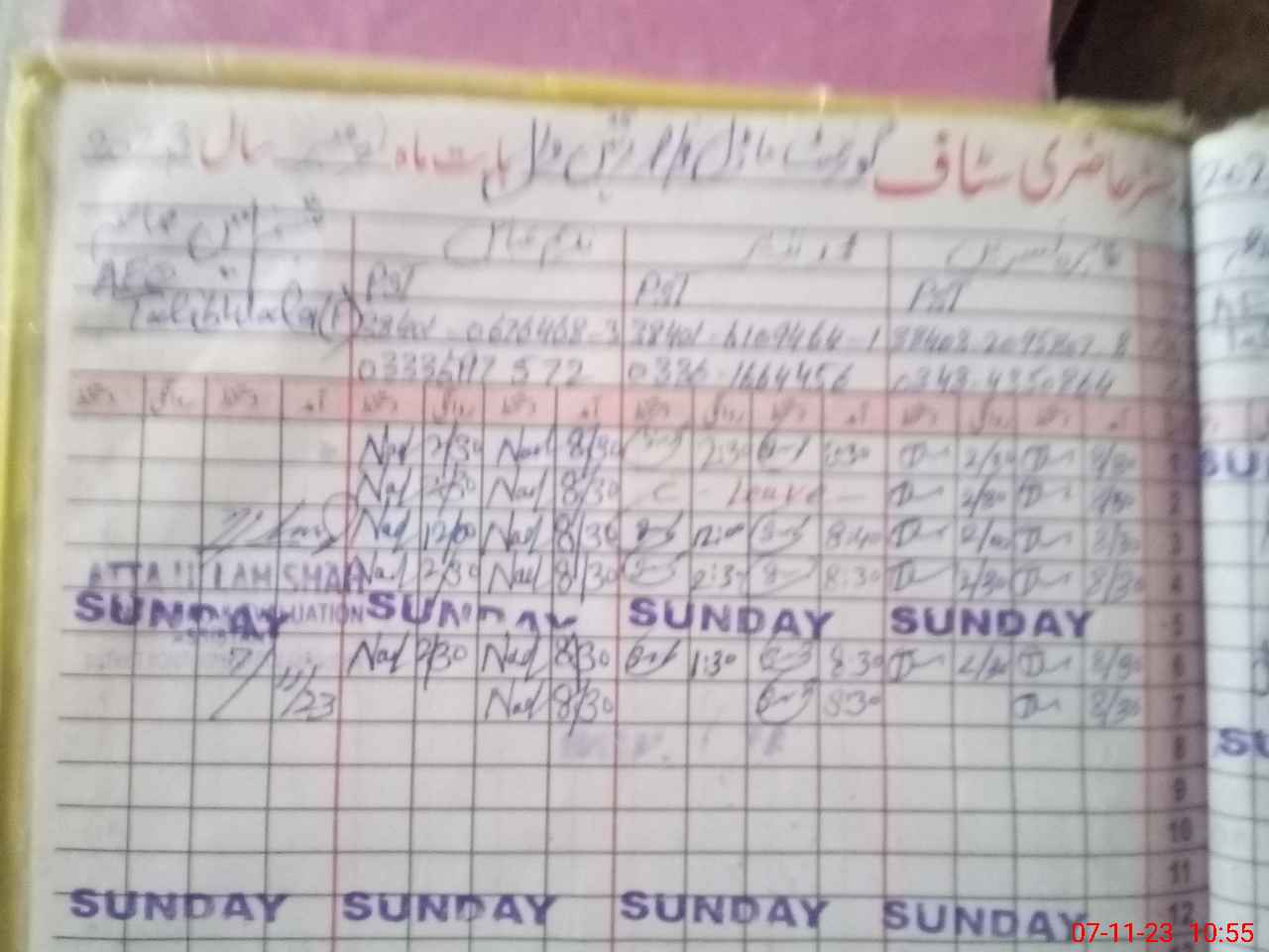 | Name: MU**** IQ**** Designation: (School Headmaster's/Headmistress's) PST Phone/Cell Number: 03**** |