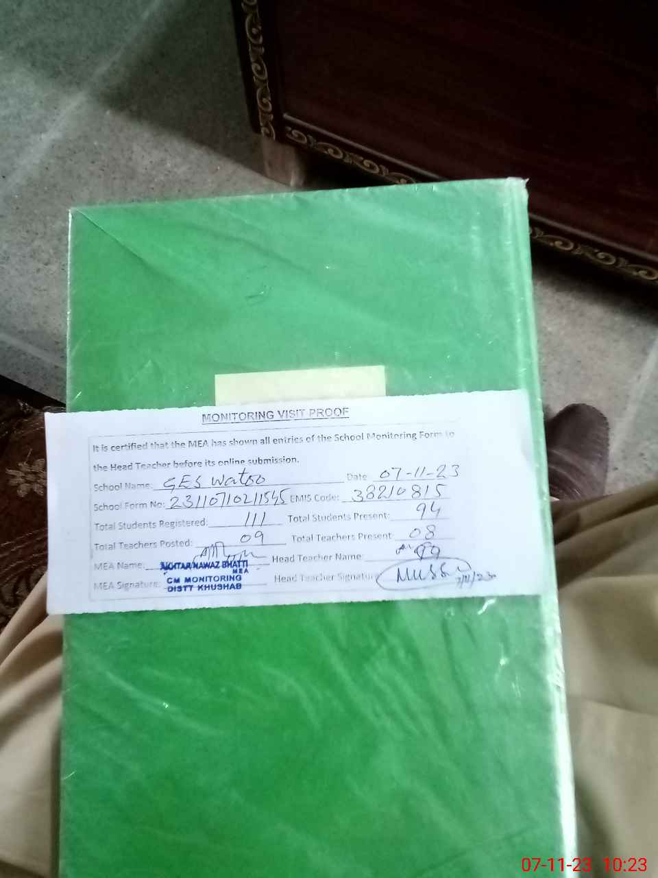 | Attendance Register | Head Teacher | MEA with School | Visit Proof |