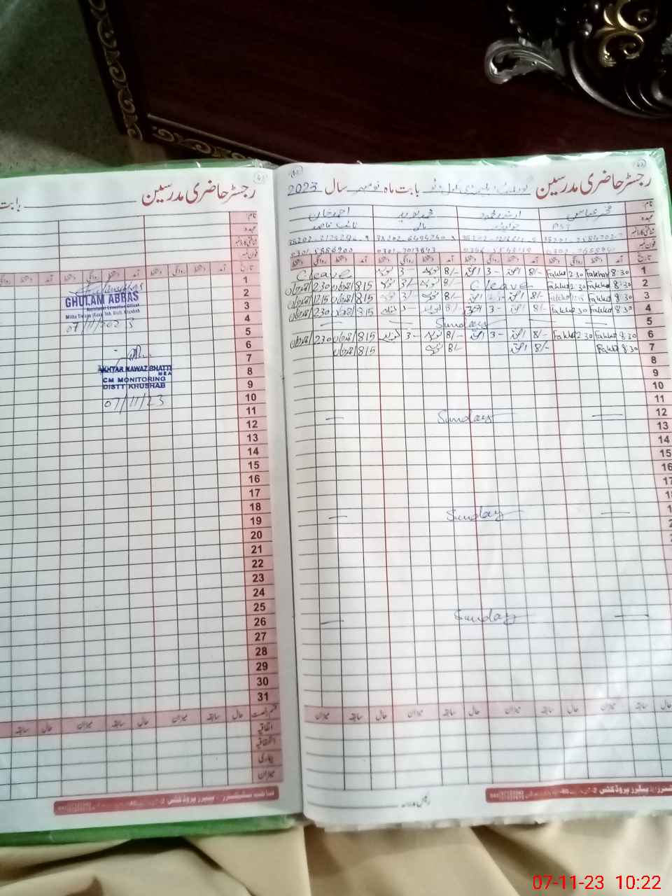 | CNIC | Full Name | Designation | R/C | Absence During Last Calender Month |