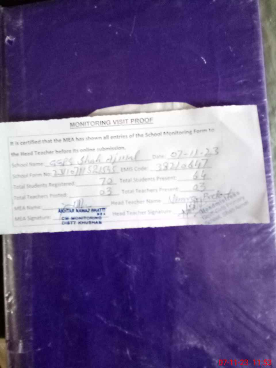 | EMIS Code: 38210647 | Name of School: GGPS SHAH AJMAL GIROTE | |||