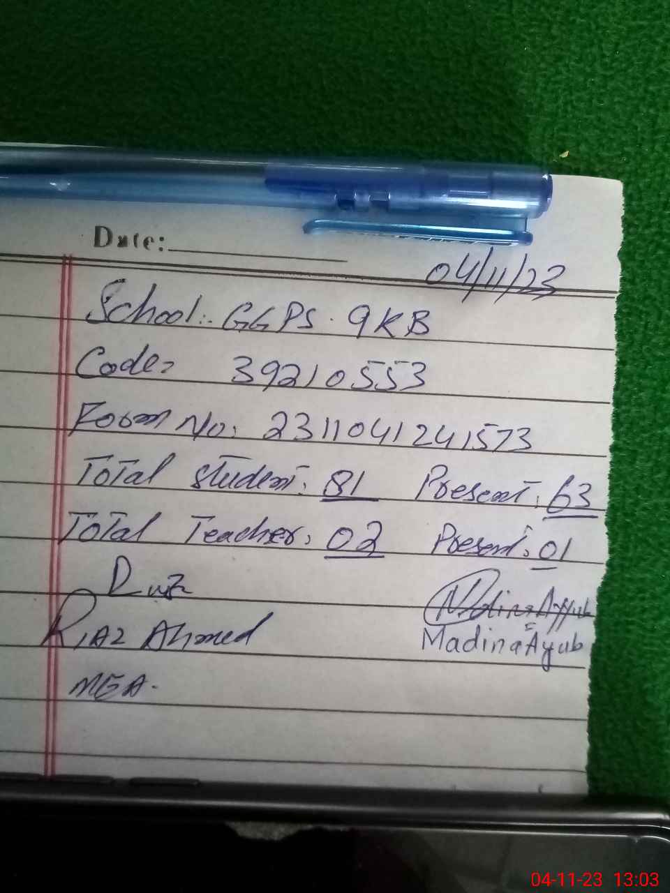| Attendance Register | Head Teacher | MEA with School | Visit Proof |