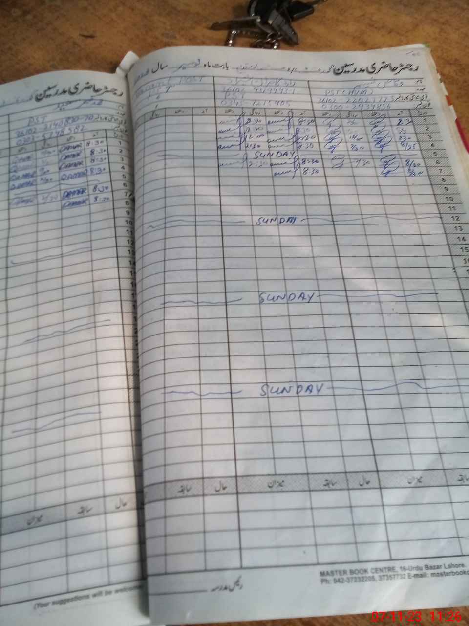 | CNIC | Full Name | Designation | R/C | Absence During Last Calender Month |