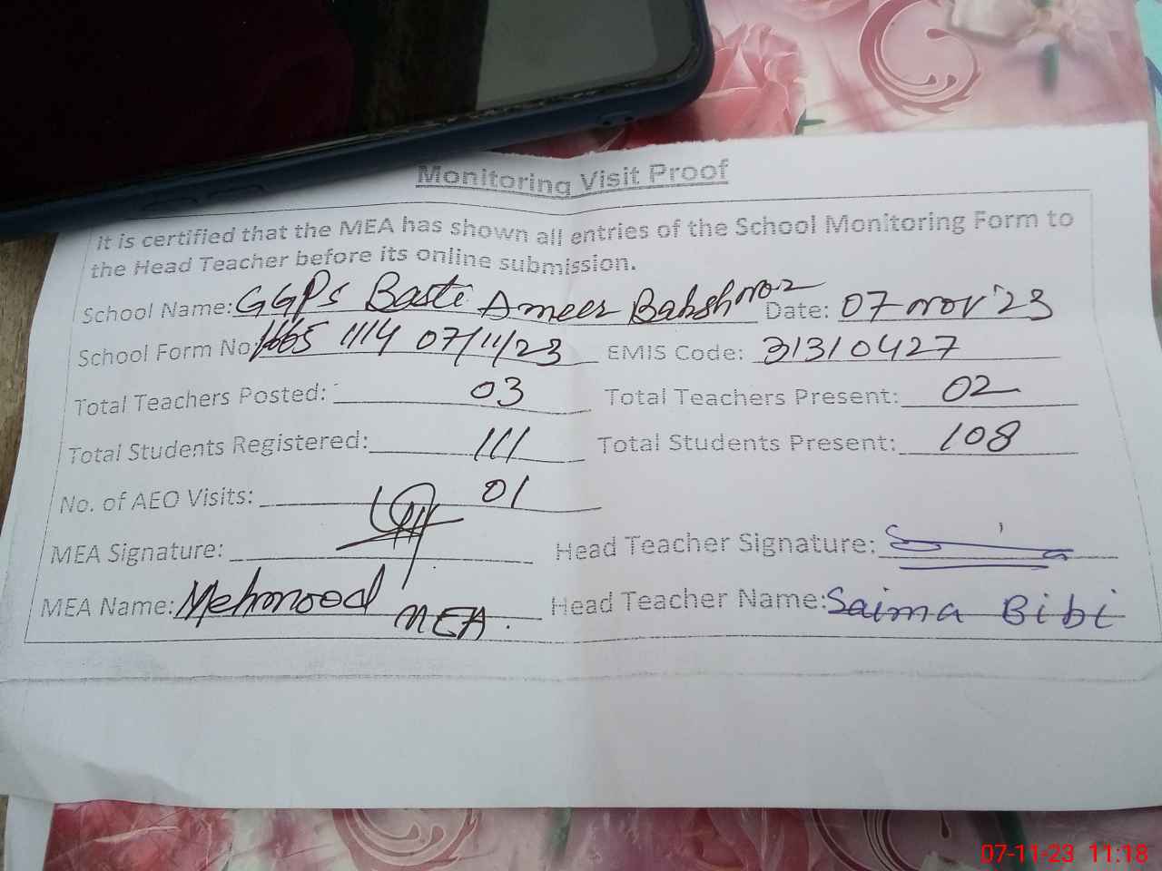 | EMIS Code: 31310427 | Name of School: GGPS BASTI AMEER BUX NO. 2 | |||