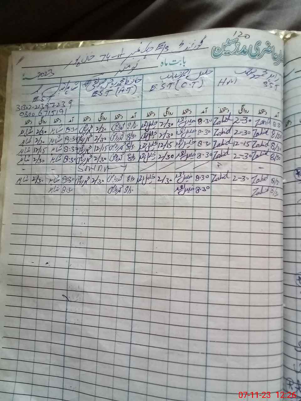 | Name: Za**** Me**** Designation: (School Headmaster's/Headmistress's) S.S.T Phone/Cell Number: 03**** |