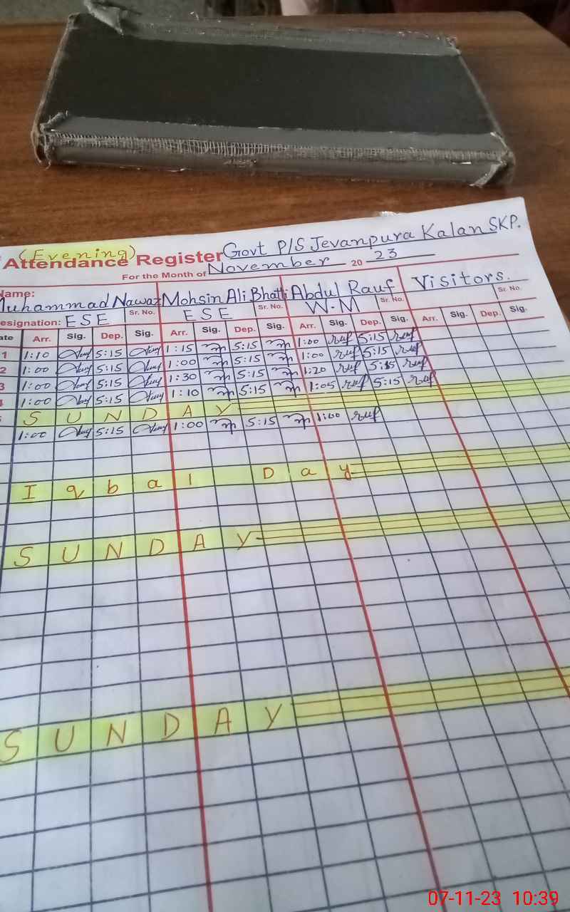 | CNIC | Full Name | Designation | R/C | Absence During Last Calender Month |