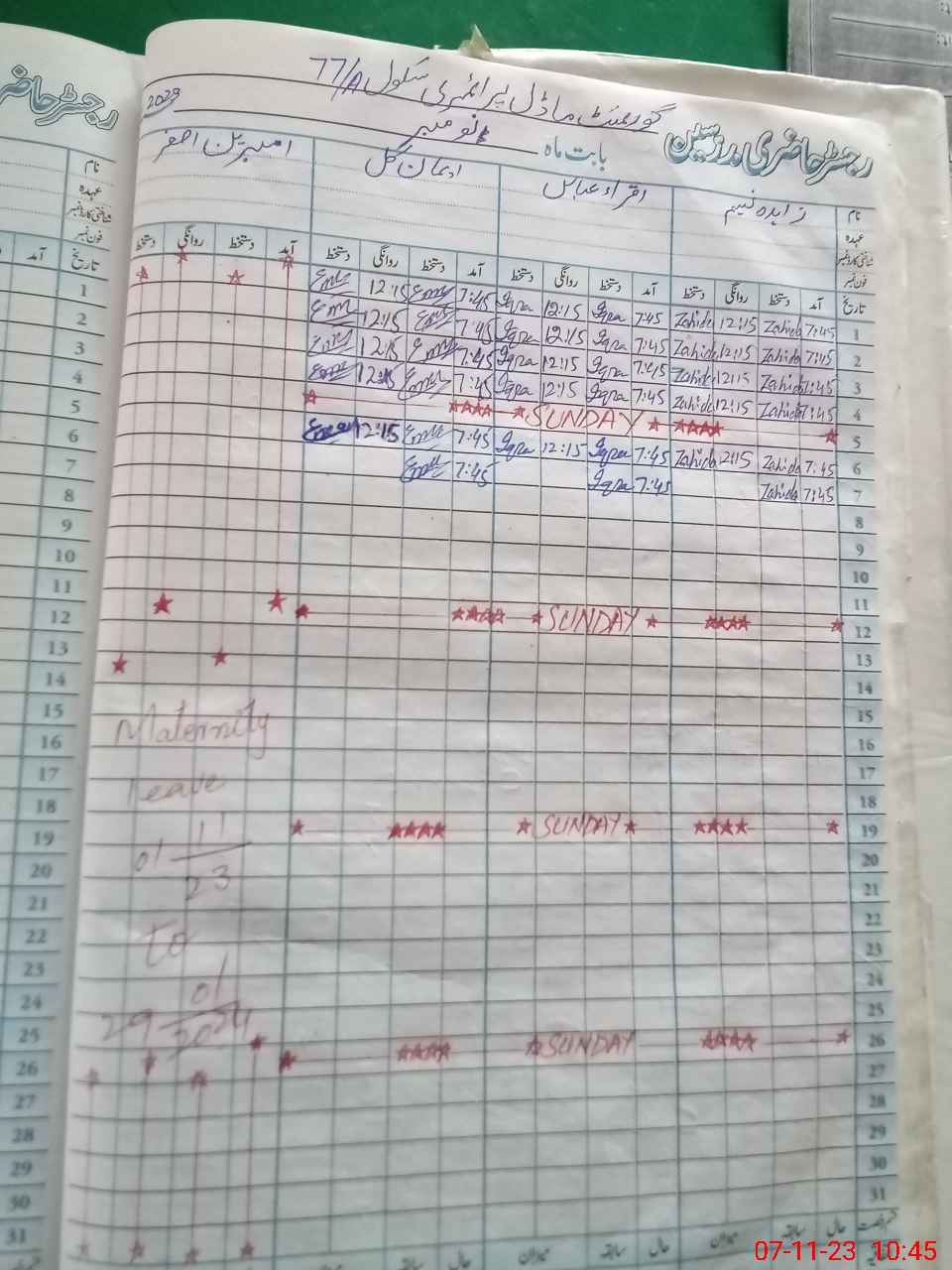 | Leave | Duty | Absent | Maternity | Medical | Ex- Pak |