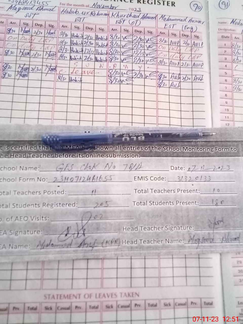 | Attendance Register | Head Teacher | MEA with School | Visit Proof |
