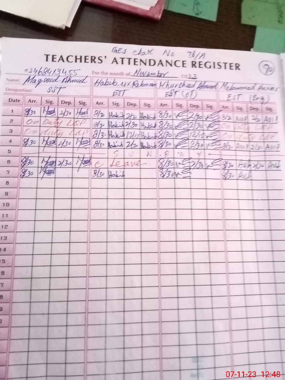 | Name: Ma**** Ah**** Designation: (School Headmaster's/Headmistress's) SST Phone/Cell Number: 03**** |