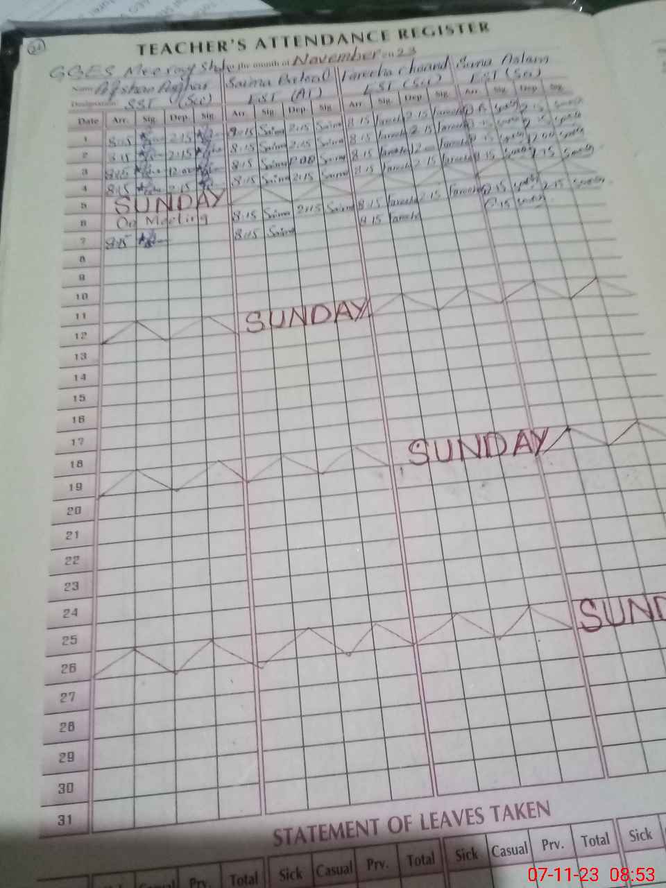 | Monitoring Date: 07-11-2023 | Start Time: 07-11-2023 08:49 AM | End Time: 07-11-2023 09:17 AM | Name of MEA: Sh**** | |