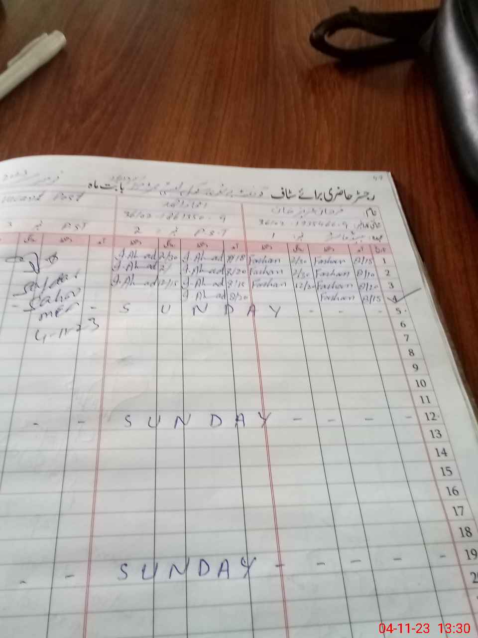 | CNIC | Full Name | Designation | R/C | Absence During Last Calender Month |