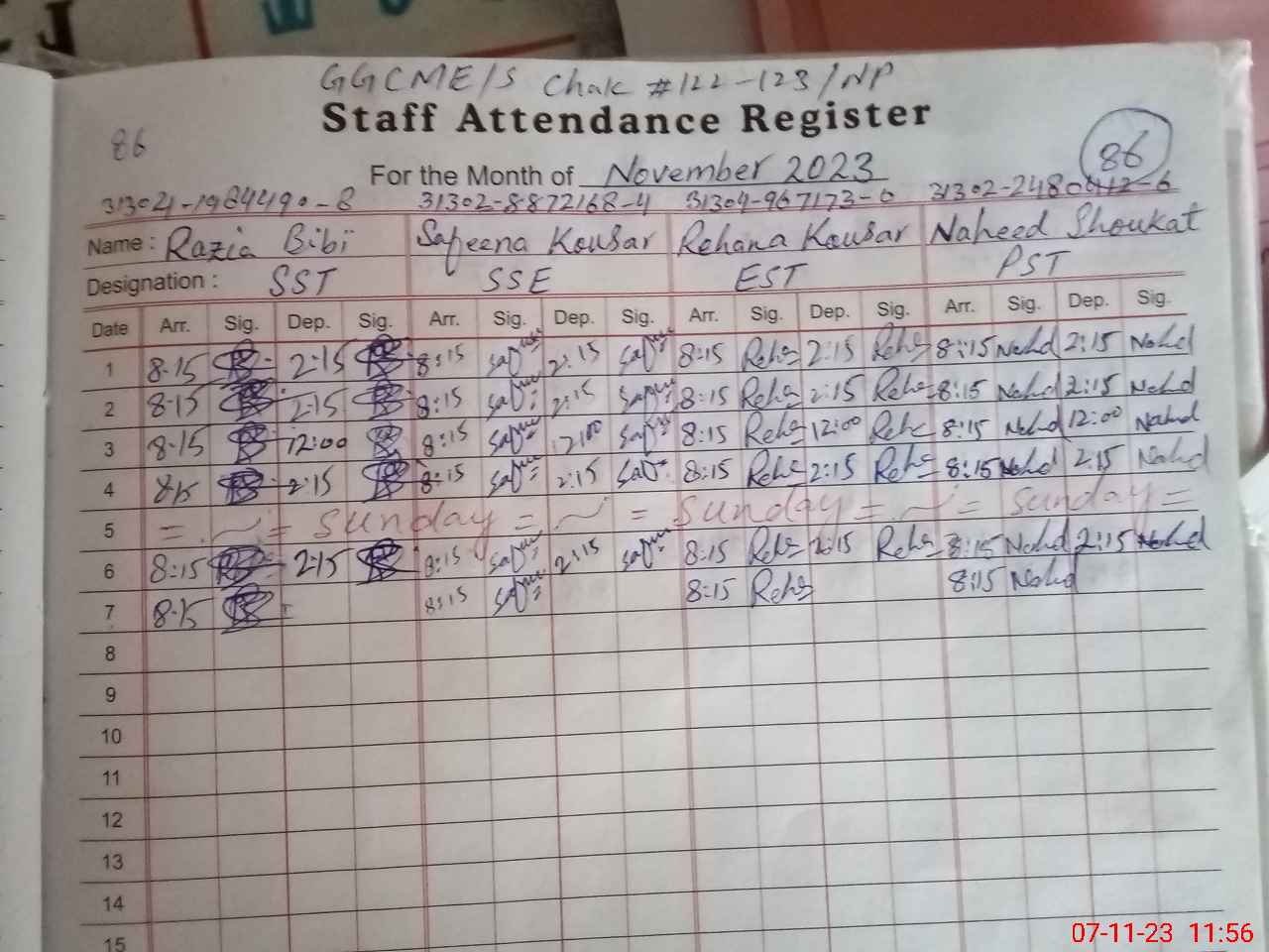 | CNIC | Full Name | Designation | R/C | Absence During Last Calender Month |