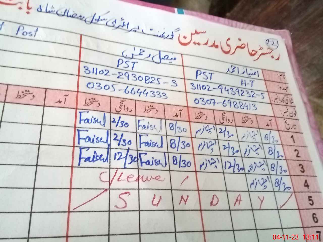 | Name: IM**** AH**** Designation: (School Headmaster's/Headmistress's) PST Phone/Cell Number: 03**** |